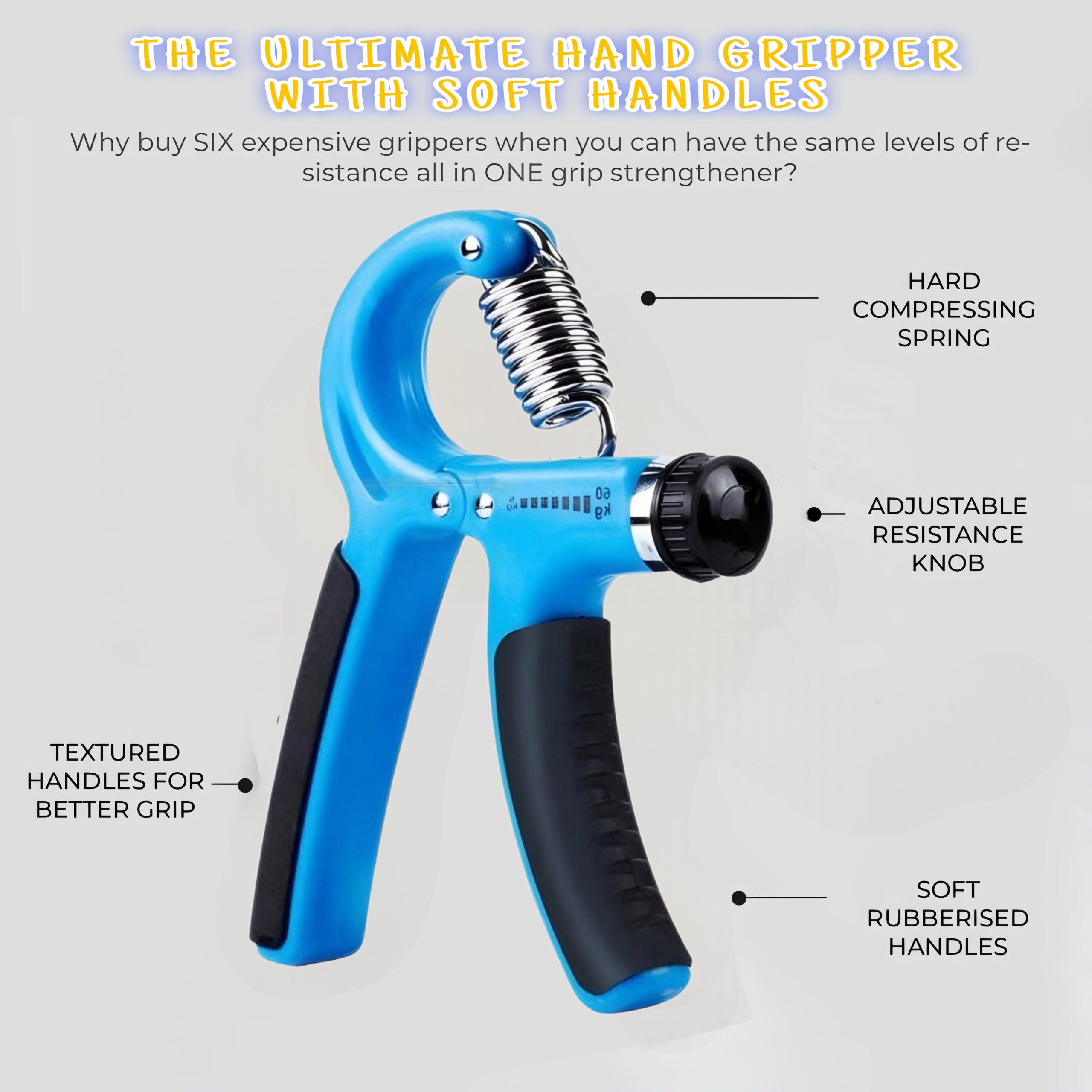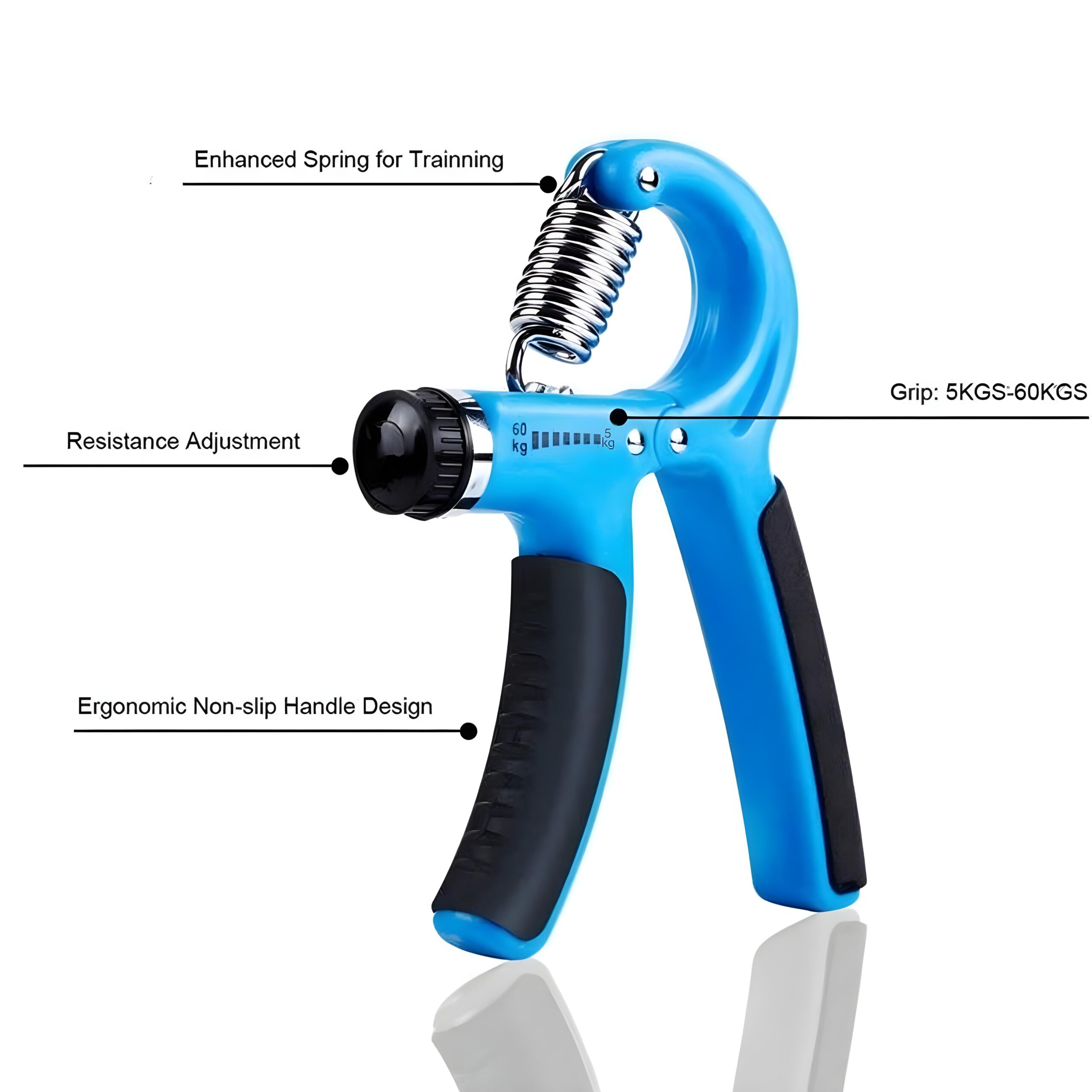 Premium Quality: This hand gripper is built with solid steel hinges and an enhanced spring for long-lasting performance. Made with durable plastic and non-slip handles, it ensures a secure grip and reliable use. Adjustable resistance from 10 to 60 kg makes it perfect for all fitness levels.