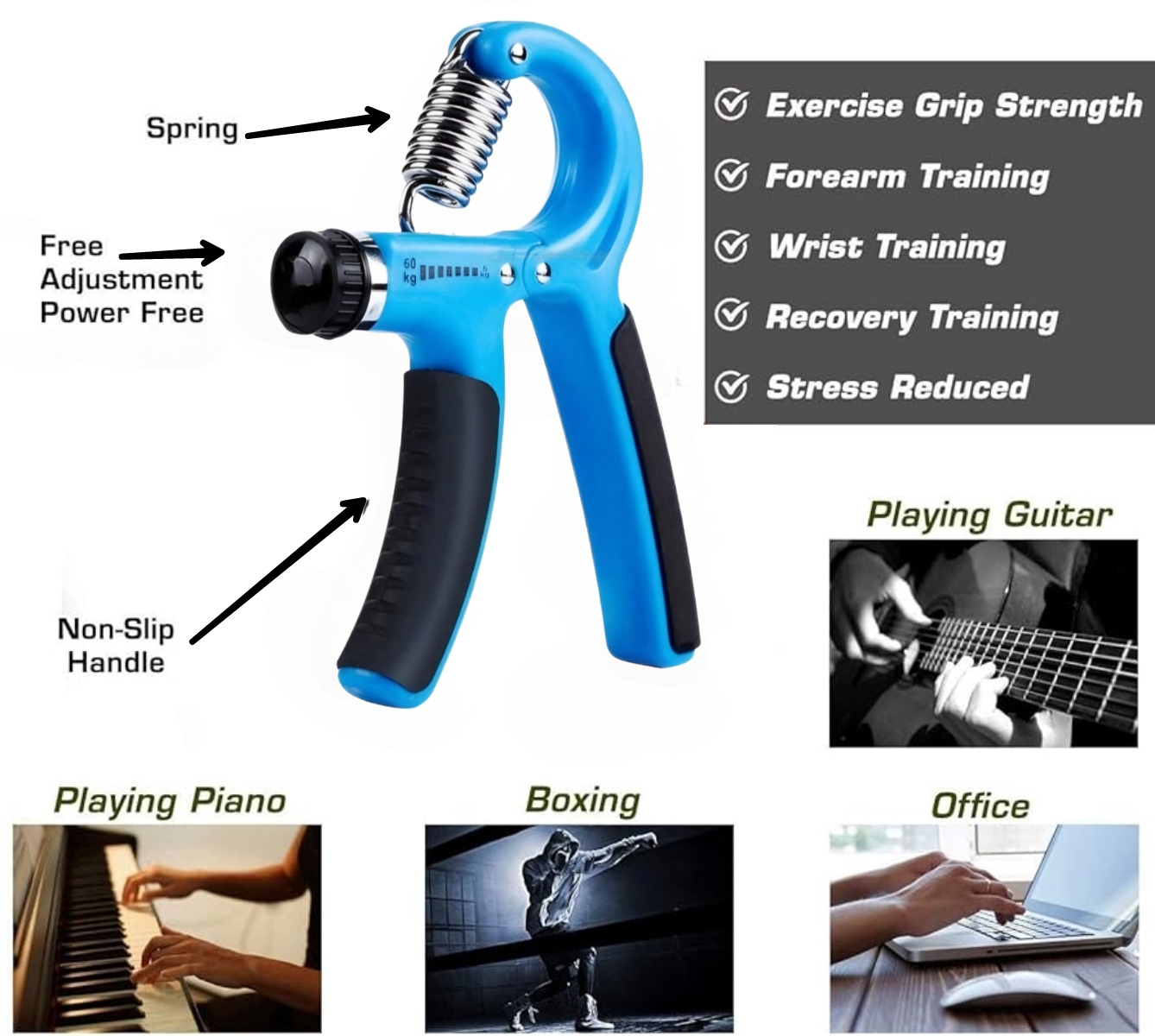 Name: Adjustable Hand Gripper 10 to 60 kg | Hand Strengthener | Forearm & Finger Exercise Tool | Muscle Builder & Recovery Support | Grip Trainer for Gym & Home | Wrist & Vein Strength Booster