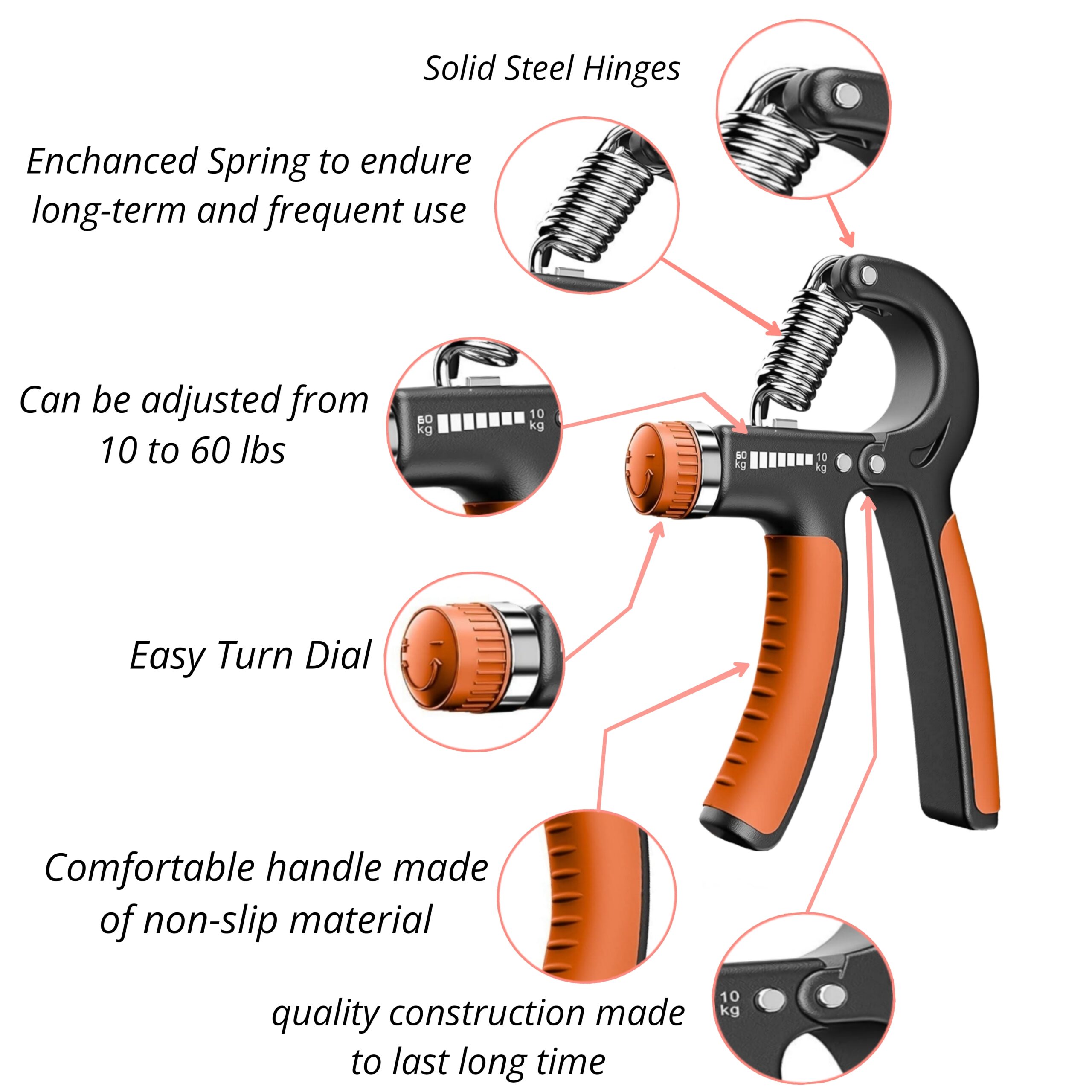 Name: Adjustable Hand Gripper 10 to 60 kg | Hand Strengthener | Forearm & Finger Exercise Tool | Muscle Builder & Recovery Support | Grip Trainer for Gym & Home | Wrist & Vein Strength Booster