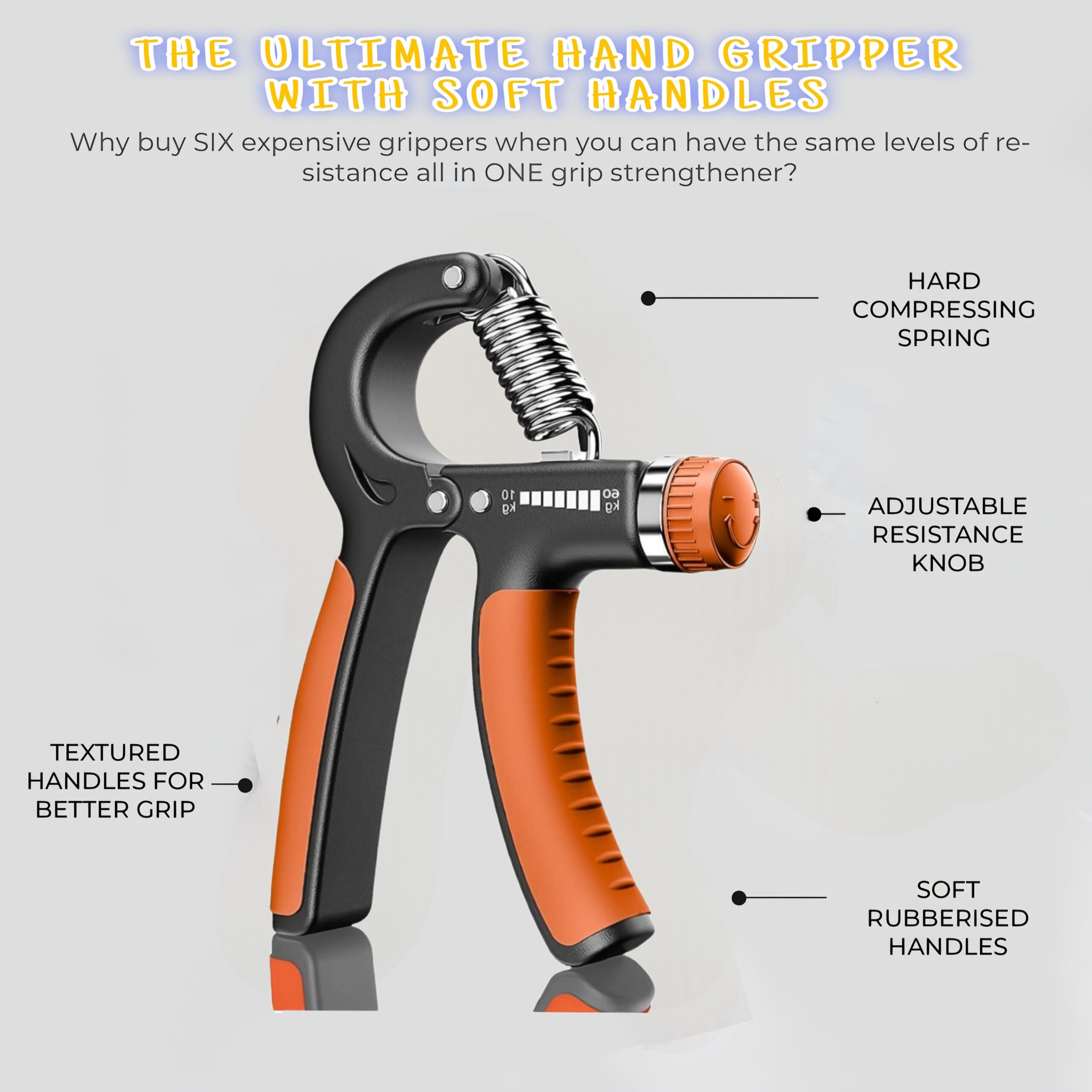 The Adjustable Hand Gripper is a compact yet powerful tool designed to strengthen your grip, fingers, wrists, and forearms. With an adjustable resistance range from 10 kg to 60 kg, it’s suitable for all fitness levels—from beginners to athletes. Its ergonomic, non-slip handle ensures a comfortable grip during long sessions, while the enhanced steel spring and solid build guarantee long-term durability. Perfect for muscle training, injury recovery, stress relief, and improving hand coordination, this gripper is ideal for home, office, or on-the fitness level.